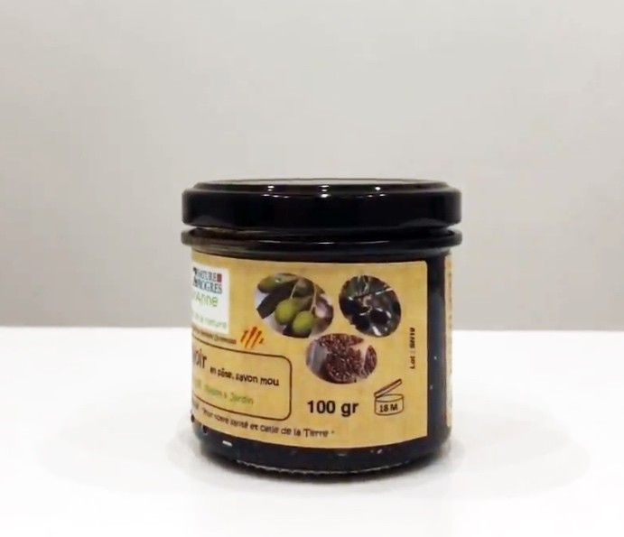 Ce savon noir est 100% végétal. C'est un soin lavant à base d'huile d'olive, d’olives noires et d'huile de lin.