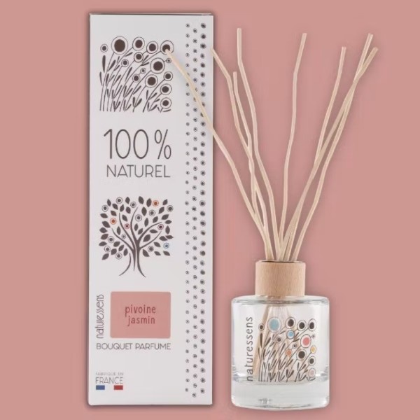 Le bouquet parfumé se présente dans une jolie bouteille en verre. La fragrance se diffuse lentement par capillarité sur les tiges en rotin naturel. Ce système de diffusion naturel et continu permet de parfumer une pièce pendant quatre à six semaines.