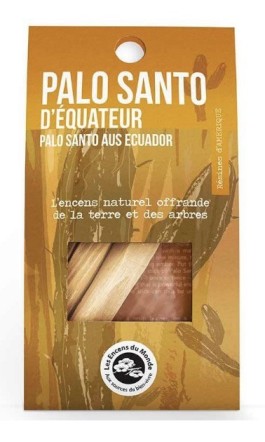 Palo Santo d'Equateur ou du Préou, en bâtons à brûler. Leurs arômes boisés et balsamiques sont réputés pour apaiser et harmoniser tout en purifiant. Ils sont souvent utilisés pour favoriser la concentration et la médiation.