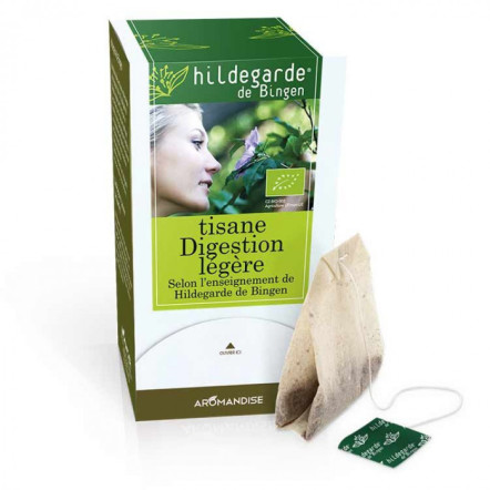 Tisane digestion légère concoctée selon l'enseignement de Hildegarde de Bingen, en agriculture biologique.
