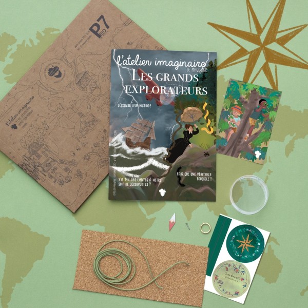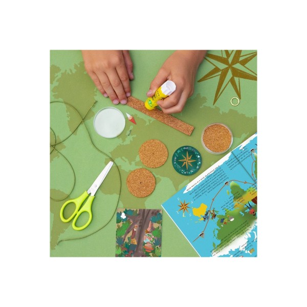 Ce kit contient le matériel pour réaliser 1 atelier de loisir créatif (Fabriquer une véritable boussole d'exploration et comprendre l'utilisation de l'aiguille aimantée et la rose des vents) et un livret documentaire illustré pour découvrir Les grands explorateurs et exploratrice tel Marco Polo, le Commandant Cousteau, Jeanne Barret... à travers des textes et illustrations épiques et humoristiques ainsi qu'un joli autocollant sur le thème du kit.