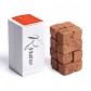 Les fèves de cacao cru (Criollo du Pérou non torréfiés) sont lentement broyées à la meule de pierre avec les autres ingrédients, 100% végétaux et essentiellement crus. Ce mélange est ensuite découpé en petits cubes, recouverts de poudre de cacao.