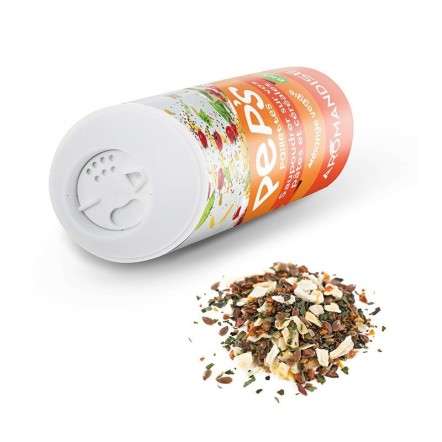 Un condiment original aux graines de lin, tomates, ail des ours, cristaux d’huiles Essentielles d'herbes aromatiques et algues kombu qui donne une autre dimension à votre plat de pâtes, céréales, riz ou légumineuses.
