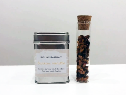Un subtil mélange sans théine de baies de sureau, fleurs et vanille bourbon pour une infusion douce et chaleureuse !