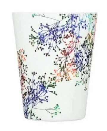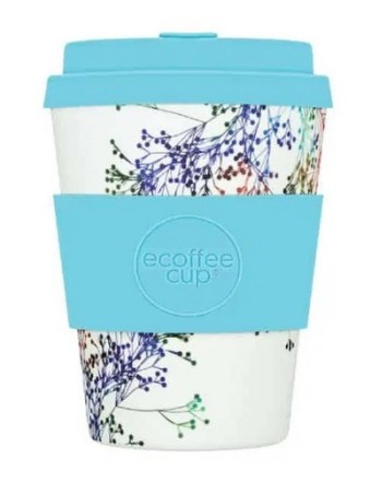 Une jolie tasse en bambou aux motifs fleuris délicats avec son couvercle en silicone bleu clair pour déguster sa boisson chaude ou froide.