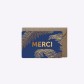 Carte de grande qualité, en format mini, avec 2 volets, couleur bleu nuit et une belle illustration de fougères ainsi que le mot "Merci" marqués à chaud bronze au recto. Enveloppe kraft inclue.