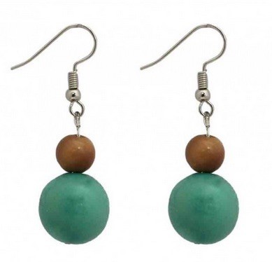 Ces boucles d'oreilles pendantes sont en tagua beige et turquoise et fabriquées en Equateur selon les principes du commerce équitable.