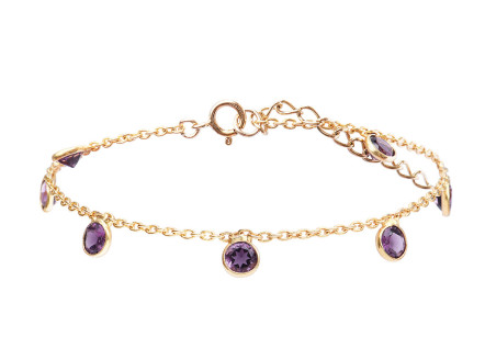 Bracelet fin et élégant en plaqué or 3 microns (résiste au temps) et pendentifs en améthyste.