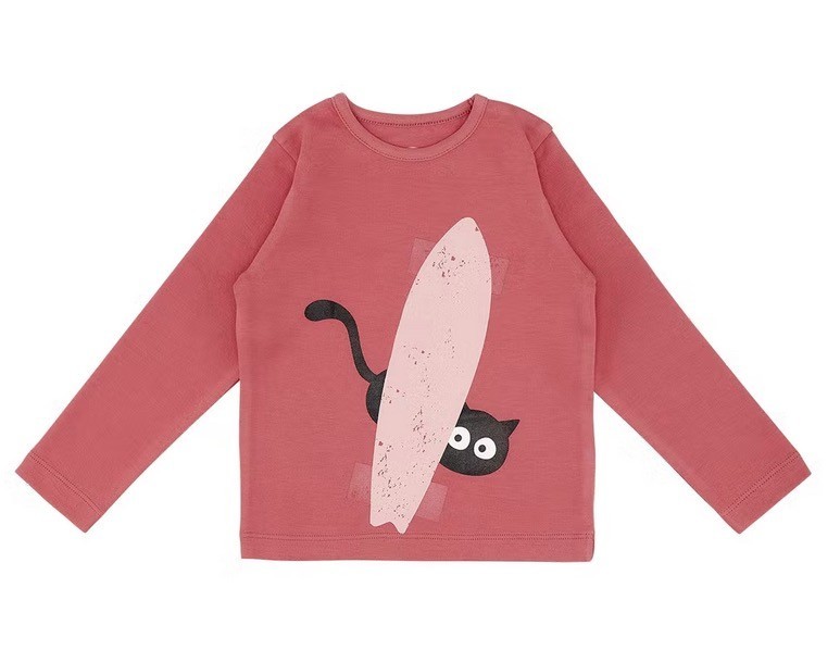 Un joli t-shirt à manches longues tout doux, sérigraphié d'un chat skateur.